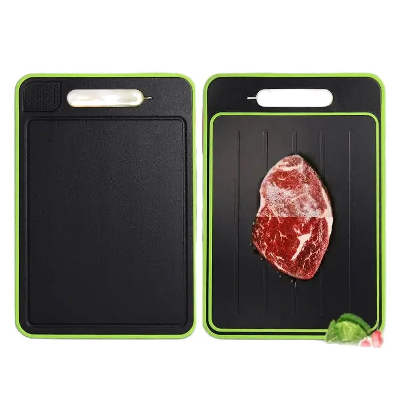 Meet the FrostLift Dual-Side Board, the ultimate multifunctional kitchen tool designed to speed up meal prep, save time, and elevate your cooking routine. Engineered from high-quality alloy with dual-purpose surfaces, it lets you thaw frozen foods quickly on one side while using the durable cutting surface on the other. With its integrated sharpening feature, every cut becomes smoother, sharper, and easier.