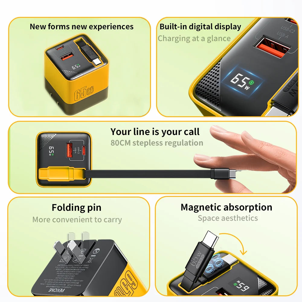 65W Super-Fast Charging: Perfect for laptops, tablets, and smartphones.